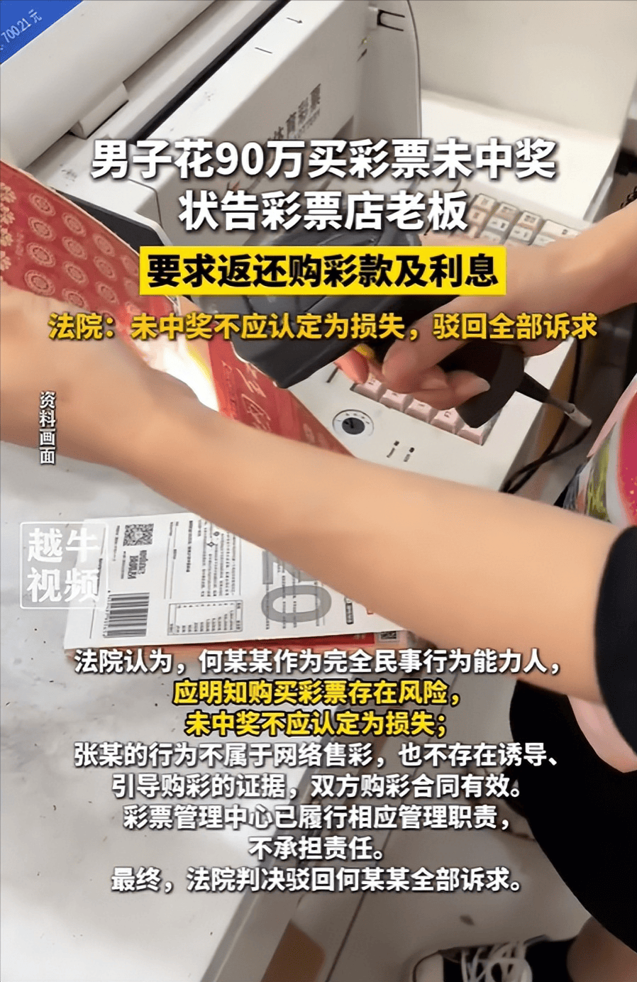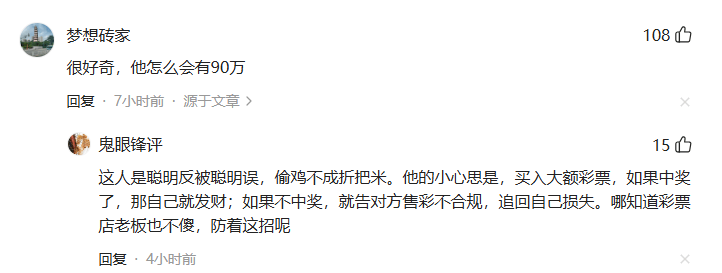 法律界人士指出,彩票的销售与开奖是严格依照国家法律法规和既定规则进行的。购彩者将90万元用于购买彩票,属于其个人自愿且有明确风险预期的投资行为(或娱乐行为)。