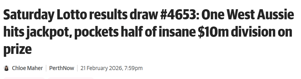 就在本次开奖前不久,西澳也曾传来喜讯。情人节当天,三名当地彩民的收获远不止一束玫瑰花。