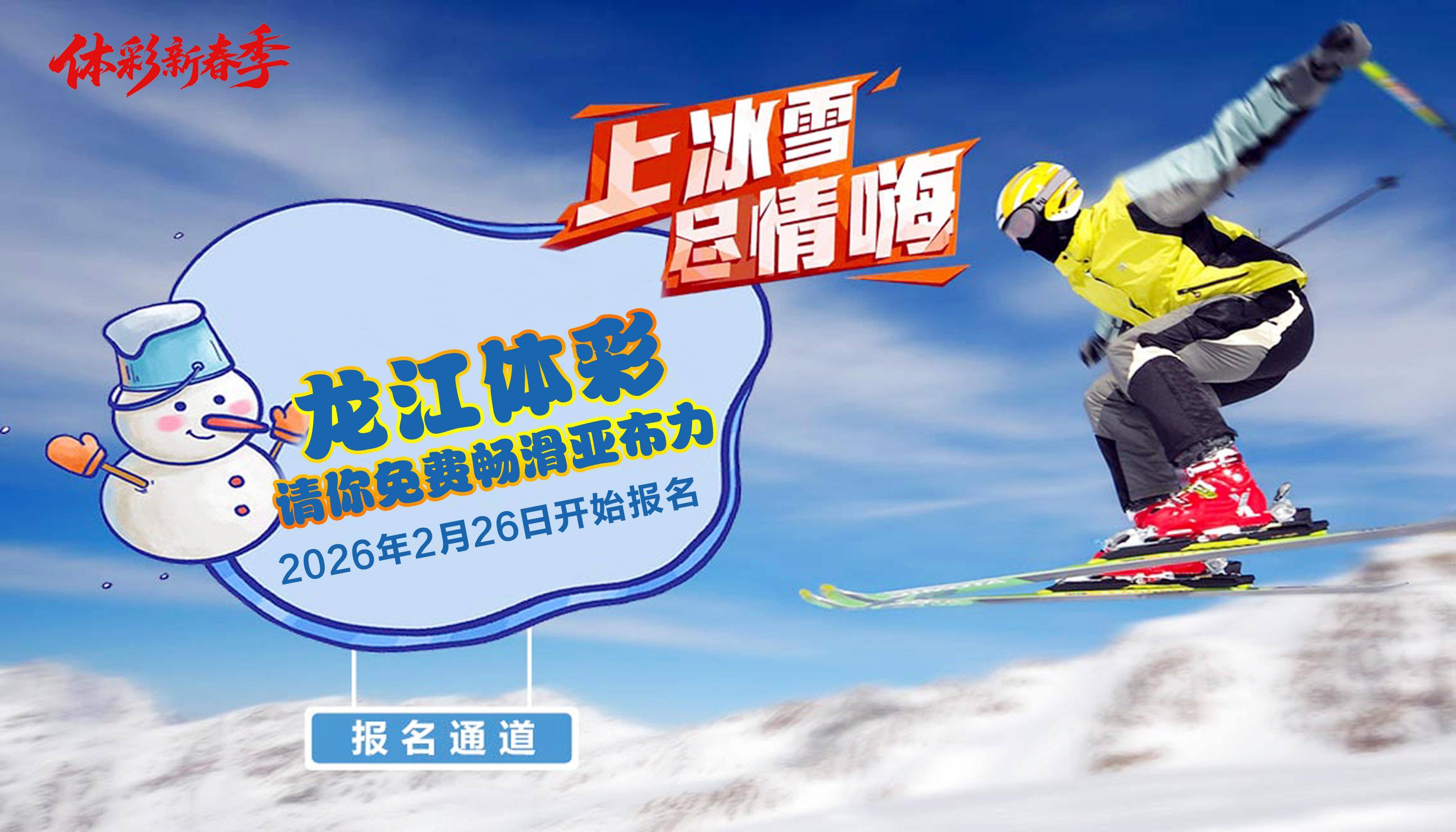 2、点击页面顶部“上冰雪,尽情嗨!龙江体彩请你免费畅滑亚布力”图片(如下图),进入报名系统