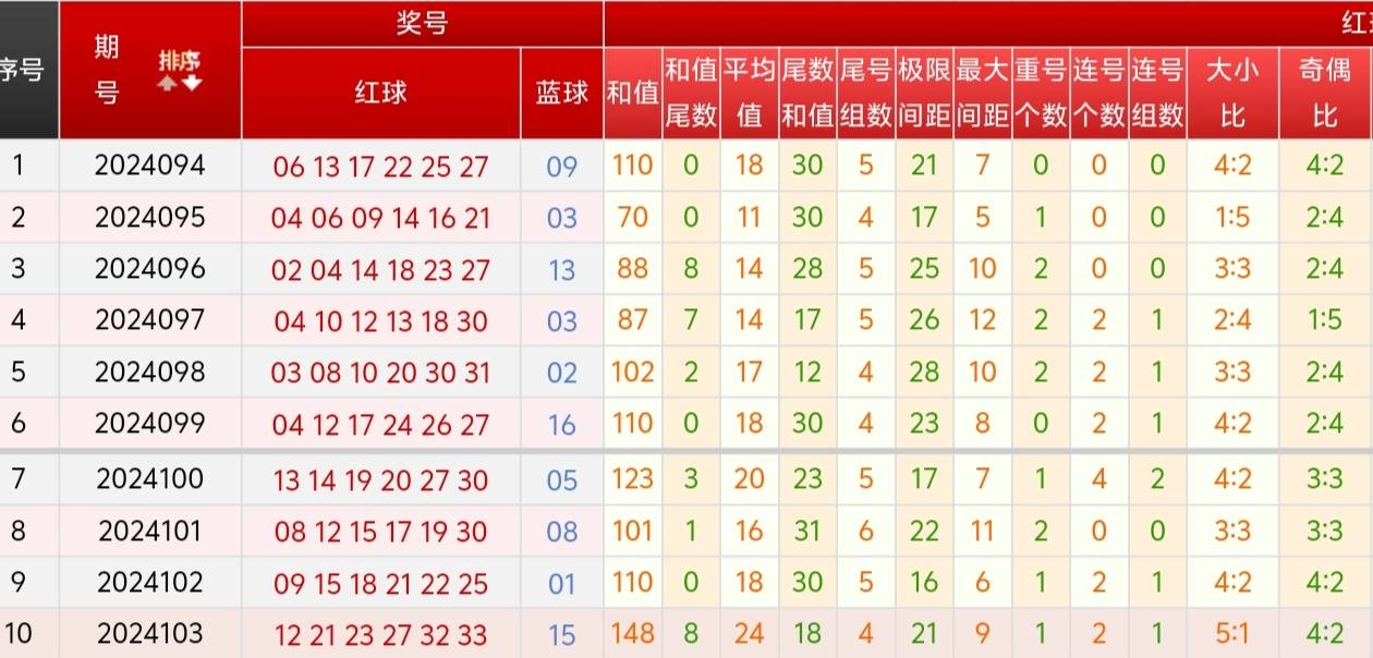 回顾上一期(24103期),我们准确地命中了胆码并成功绝杀了六个号码,这无疑是对我们分析方法和技术水平的一次肯定。但我们也深知,彩票开奖的随机性决定了任何预测都无法保证百分之百的准确性。因此,在庆祝上期成绩的同时,我们也必须保持谦逊的态度,继续努力研究和改进我们的预测方法。